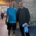 伊布在赛后拿着球衣,请哈兰德为其签名