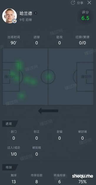 首先是哈兰德全场0射门、连续三场联赛无进球的尴尬。这个问题现在看起来要被警觉起来了——无论从身体状态,还是比赛欲望上,感觉他今天都很糟糕,非常糟糕。